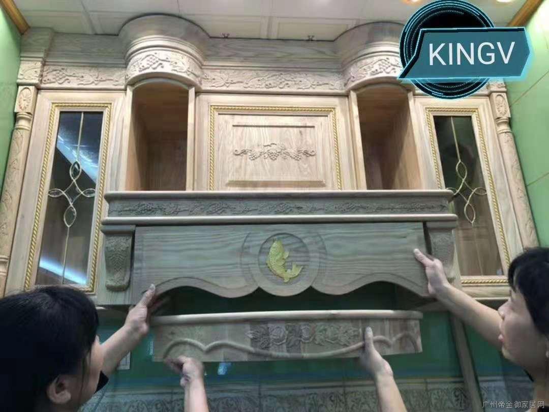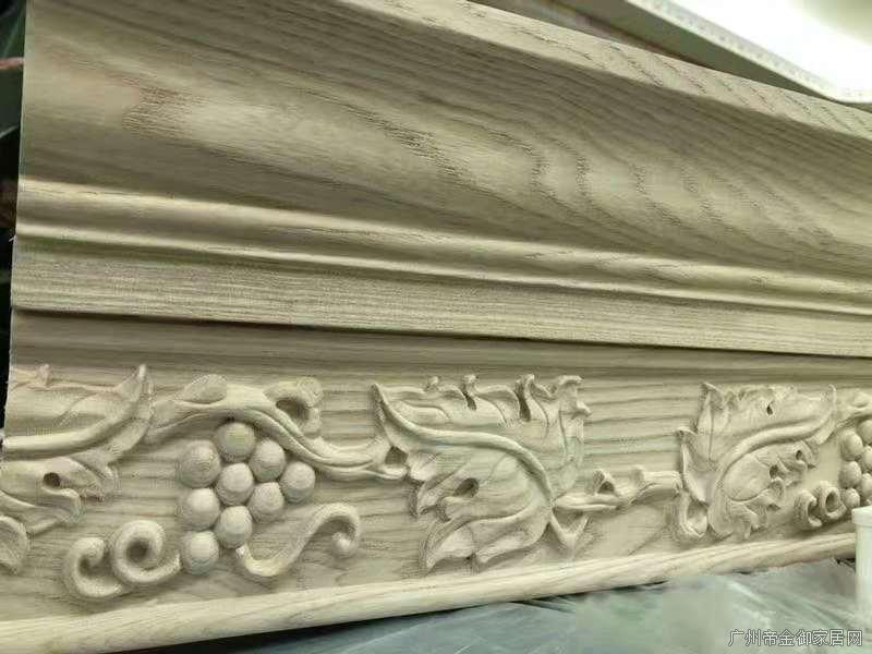 頂線的雕花形狀類似葡萄樹與葡萄果實,寓意著以后生活更加飽滿,美國紅橡材質(zhì)的那粗獷的紋路更能體現(xiàn)雕花的精妙之處與其深秒的寓意。