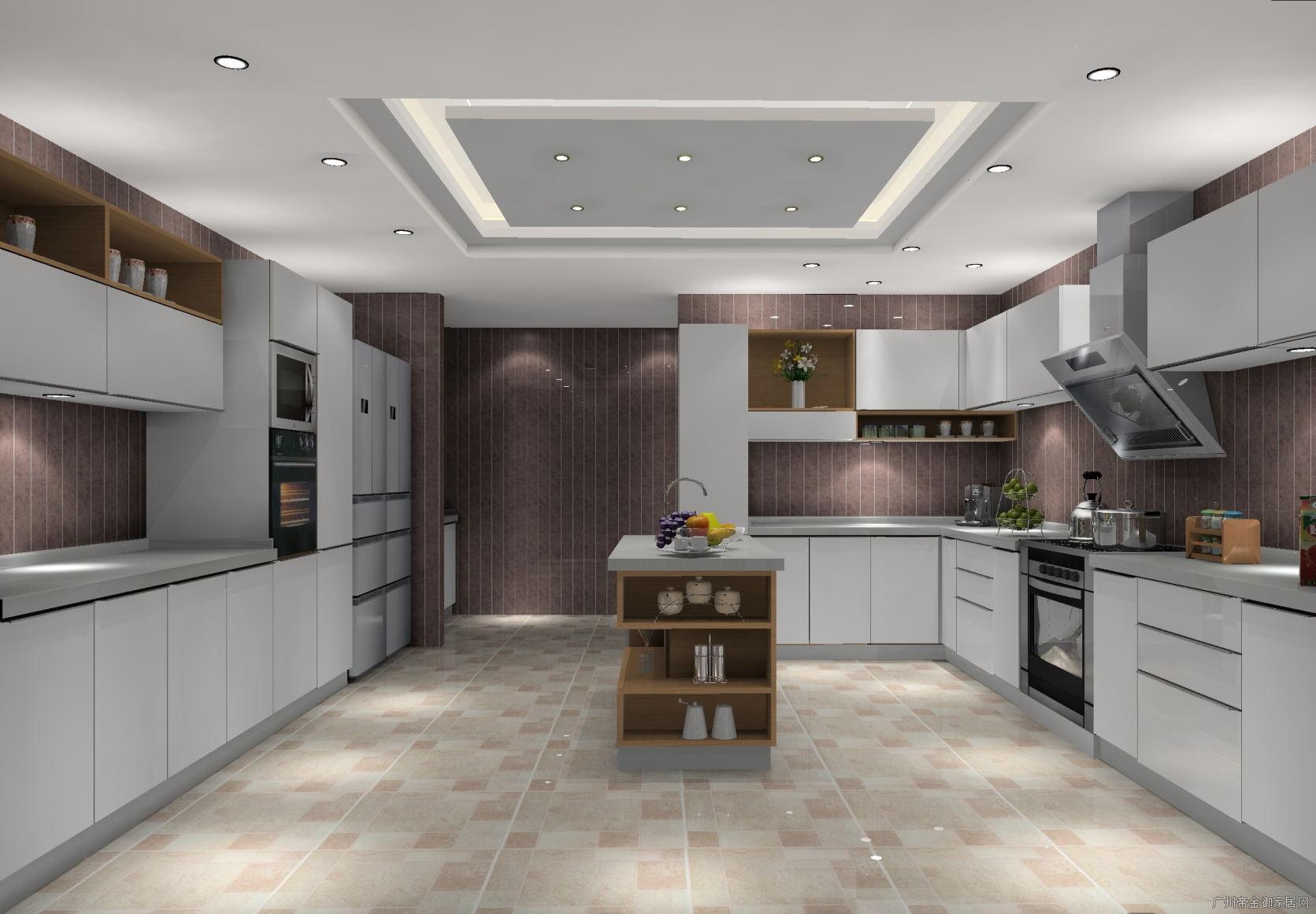 南方空氣環境濕潤,廚房地板不時會潮濕,廚房踢腳線設為八厘米,不僅可有效防蟑螂老鼠而且防潮性極佳,不會因霧水的滲入使櫥柜壽命降低,且柜體采用防潮板可大大提高櫥柜壽命。櫥柜右邊為L型工作臺,可在其進行工作烹飪,吊柜門板采用百隆自動感應開關鉸鏈所以沒有設計拉手,櫥柜中島下方設計為開放式,可放置水杯等小零件物品,櫥柜左邊為一字型餐桌加功能柜,可在此進行用餐,一家人坐在一排享受便捷生活帶來的快樂與溫馨。