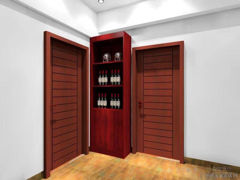 客廳酒柜放在主臥與次臥中間,由于業主選擇的門是桃紅色實木門,所以酒柜顏色選擇了與房門的顏色接近的桃紅色。
