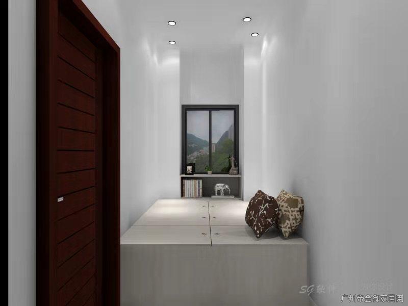 工人房因為空間較小,設計師設計了榻榻米床,儲物和休息則無憂,窗口下設計了個小層板,辦公之余看看窗外的房間何嘗不是一種享受~